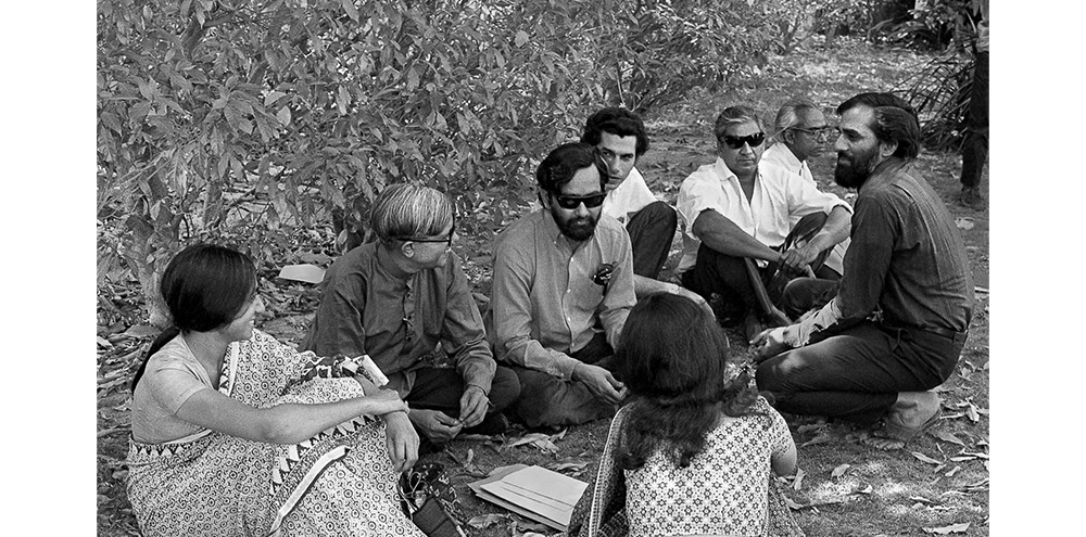 At the same time as Kapur, Sundaram, and others engaged art for explicitly political aims, the inimitable pioneering artist K.G. Subramanyan endeavored to create other public purposes and encounters for art through his position as professor and then as Dean of the Faculty of Fine Arts. Subramanyan sought to “strew art in the environment,” for instance through public murals at Jyoti Limited, while shaping the pedagogic goals and atmosphere of the college through the 1960s and 1970s, encouraging students to work in a variety of mediums as he did. He also led weekend lectures that spanned the role of the artist to how we observe the world and develop an artistic vision. Through Subramanyan, this was an era of “artist as teacher” in Baroda, with faculty including Nasreen Mohamedi, Gulam Sheikh, and others, many of whom had returned from abroad. Relationships between teacher and student in this period echoed the “guru-shishya” model, with education occurring as much in the classroom as in weekend lectures and at the college canteen.